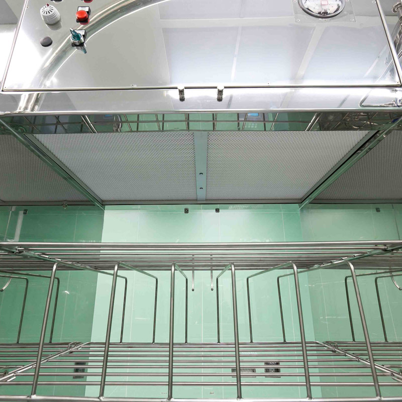 空气从周围区域抽取,并通过轴向或离心风机吹入HEPA过滤器。所有风机为变频风机,可以进行调整以产生完整的层流模型。每个HEPA过滤箱直接连接到空气处理单元;安装在层流转运车的上方,方便拆卸和替换。